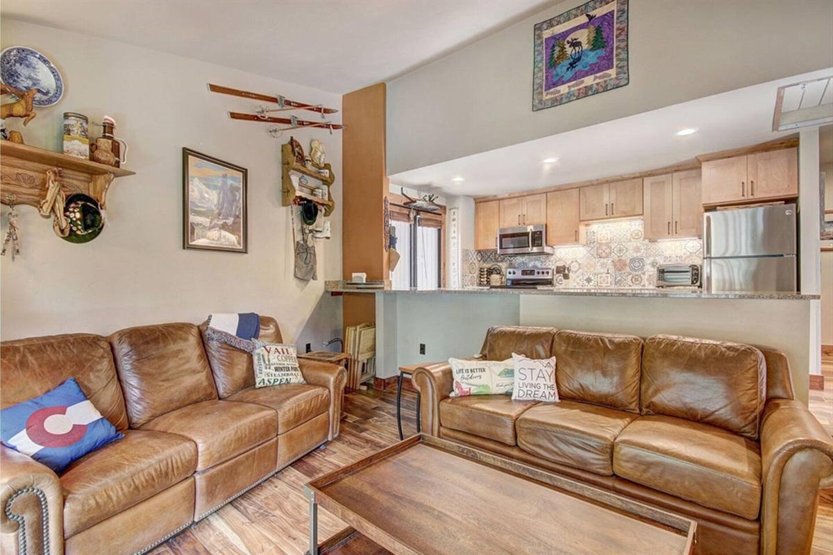 This two-bedroom, two-bath condo is a practical and comfortable place to slow down in the beautiful Rocky Mountains. You’ll find space to rest, cook, and stretch out—plus easy access to both the mountain top and the rhythms of town.